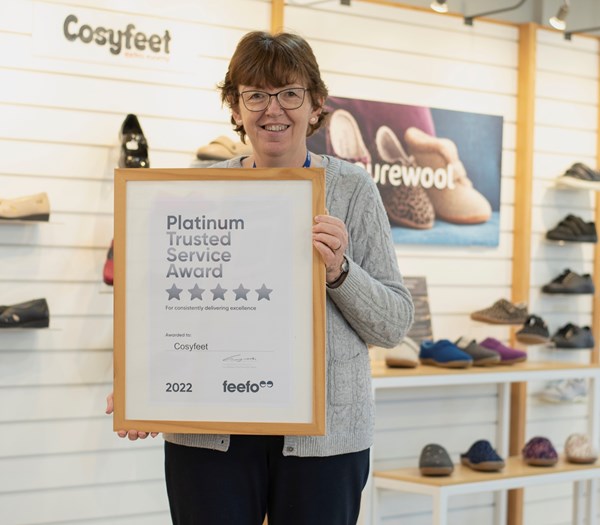 Cosyfeet is the proud recipient of a Feefo Platinum Trusted Service award for 2022. The Trusted Service Awards are unique as they are based purely on feedback from real customers. This means they are a true reflection of commitment to outstanding customer service.