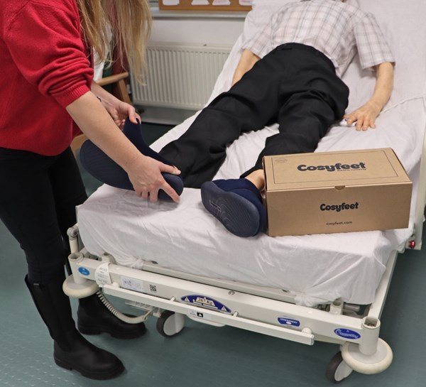 Health & Social Care students at Strode College in Somerset have kitted out the lifelike manikins on their simulation ward with slippers made by local footwear manufacturer, Cosyfeet.